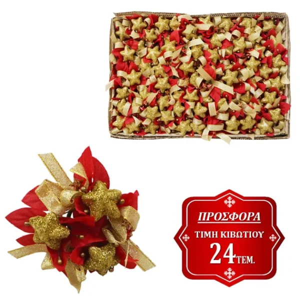 ΧΡΙΣΤΟΥΓΕΝΝΙΑΤΙΚΟ ΣΤΕΦΑΝΑΚΙ ΚΗΡΟΠΗΓΙΟΥ ΚΟΚΚΙΝΟ ΑΣΤΕΡΙΑ (ΕΣ.Φ2 – ΕΞ.Φ10cm) 24/ΚIB