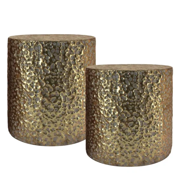 ΜΕΤΑΛΛΙΚA ΤΡΑΠΕΖAKIA ΣΕΤ/2 ΣΤΡΟΓΓΥΛΑ ΧΡΥΣΟ ΣΦΥΡΙΛΑΤΟ – L:Φ51.5×55.5, S:Φ43.5x50cm 1/ΚΙΒ