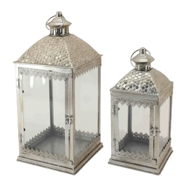 ΜΕΤΑΛΛΙΚA ΦΑΝΑΡΙA ΚΕΡΙΩΝ ΣΕΤ/2 ΑΣΗΜΙ ΠΑΛΑΙΩΜΕΝΟ ΚΡΕΜΑΣΤΑ – L:23×52, S:17.5x37cm 2/ΚΙΒ