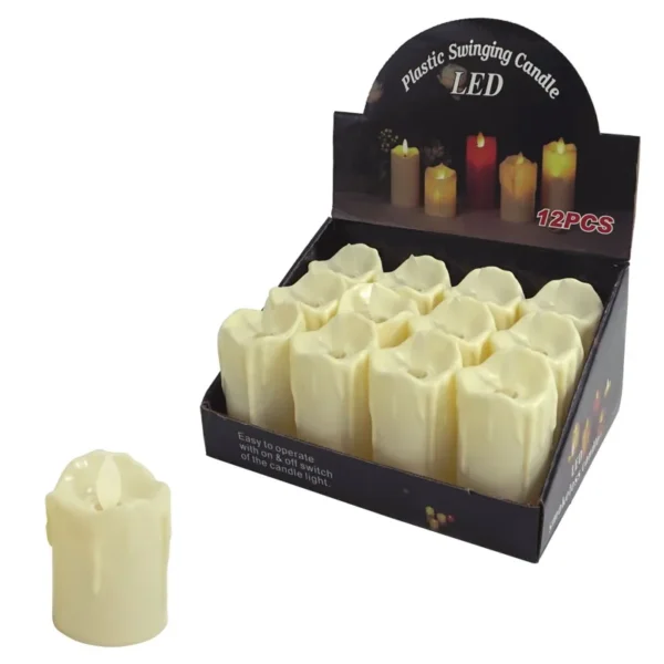 ΚΕΡΙ LED ΜΠΑΤΑΡΙΑΣ ΕΚΡΟΥ ΠΛΑΣΤΙΚΟ ΣET/12 & ΚΙΝΟΥΜΕΝΗ ΦΛΟΓΑ – Φ5x7cm 40/480ΚΙΒ