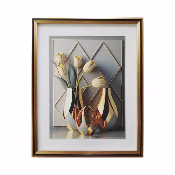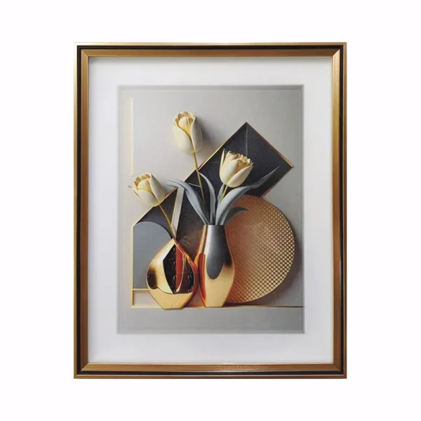 ΚΑΔΡΑΚΙ ΜΕ ΧΡΥΣΗ ΚΟΡΝΙΖΑ & ΕΚΤΥΠΩΣΗ 3D ΒΑΖΑ ΑΦΗΡΗΜΕΝΟ – 41x41cm 24/ΚΙΒ