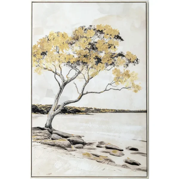 ΠΙΝΑΚΑΣ ΚΑΜΒΑΣ ΔΕΝΤΡΟ ΧΡΥΣΟ ΣΤΗΝ ΠΑΡΑΛΙΑ ΣΕ ΚΟΡΝΙΖΑ ΔΕΞΙΟ – 82.5×122.5×4.5cm 6/KIB