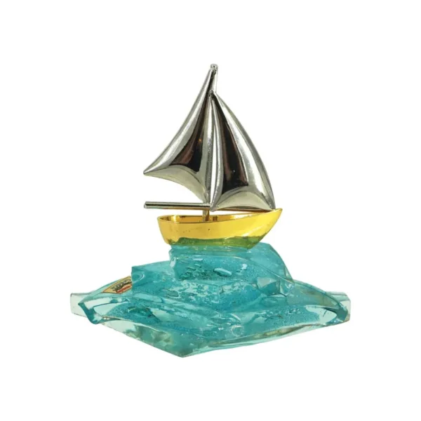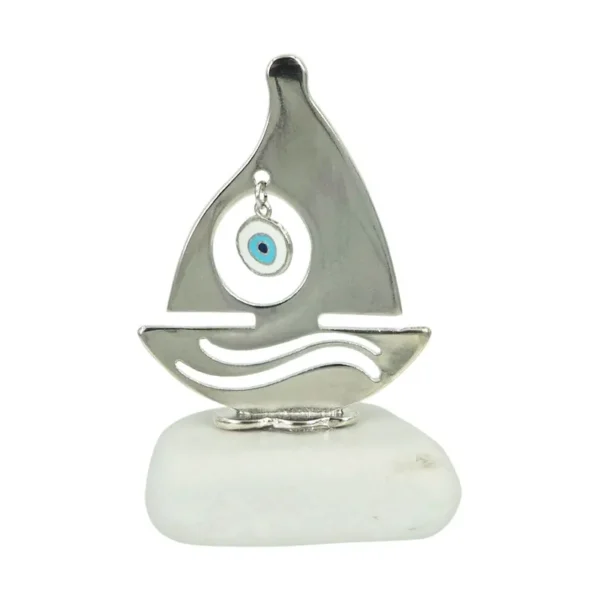 ΔΙΑΚΟΣΜΗΤΙΚΟ ΕΠΙΤΡAΠΕΖΙΟ ΜΕΤΑΛΛΙΚΟ ΚΑΡΑΒΙ ΑΣΗΜΙ ΜΕ ΜΑΤΙ ΣΕ ΠΕΤΡΑ – Y10cm