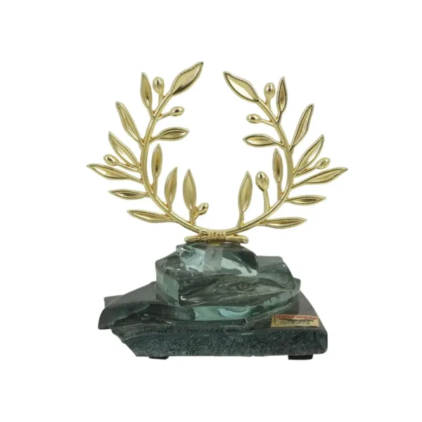 ΔΙΑΚΟΣΜΗΤΙΚΟ ΓΥΑΛΙΝΟ ΦΟΥΤΖΙ ΜΑΥΡΟ ΜΕ ΣΤΕΦΑΝΙ ΕΛΙΑΣ ΜΕΤΑΛΛΙΚΟ ΧΡΥΣΟ – 12×10.5cm