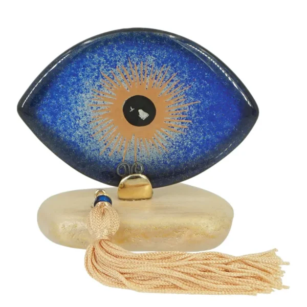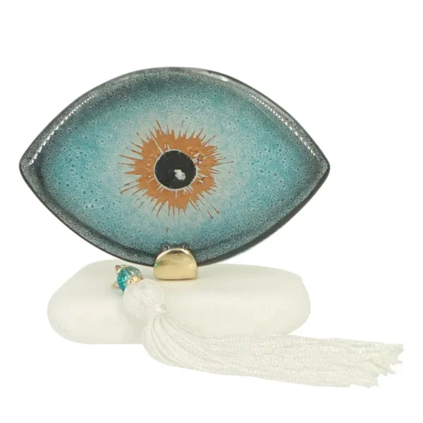 ΔΙΑΚΟΣΜΗΤΙΚΟ ΕΠΙΤΡΑΠΕΖΙΟ ΓΥΑΛΙΝΟ ΦΟΥΤΖΙ ΜΕ ΠΕΤΡΑ ΚΑΡΑΒΙ ΜΠΛΕ – 10x18cm