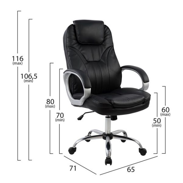 ΚΑΡΕΚΛΑ ΓΡΑΦΕΙΟΥ ΜΑΥΡΟ PU SIVANA 64x56x105-114Y εκ.HM1033