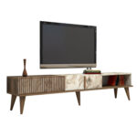 Το ΗΜ9512.03 είναι ένα μοντέρνο και λειτουργικό έπιπλο τηλεόρασης από μελαμίνη σε συνδυασμό χρωμάτων ΚΑΡΥΔΙ και ΟΨΗ ΛΕΥΚΟΥ ΜΑΡΜΑΡΟΥ, που θα ομορφύνει το σαλόνι σας! Είναι μακρύ και διαθέτει 3 ισομεγέθεις χώρους ως κύριο χώρο αποθήκευσης ή τοποθέτησης αντικειμένων. Οι δύο από αυτούς είναι ντουλάπια, που ανοίγουν κατακόρυφα. Τα πόδια είναι ψηλά και στο ίδιο χρώμα με την υπόλοιπη κατασκευή. Οι διαστάσεις του επίπλου είναι κατάλληλες για όλες τις τηλεοράσεις εάν θέλετε η τηλεόρασή σας να στηρίζεται σε βάση. Πρόκειται για μια κομψή πρόταση για το σαλόνι σας!