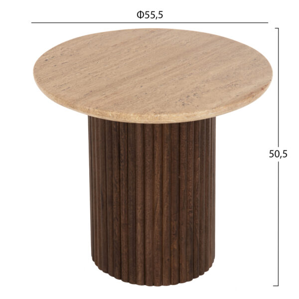 ΤΡΑΠΕΖΙ ΣΑΛΟΝΙΟΥ ΣΤΡΟΓΓΥΛΟ GLADYS HM9714 ΜΑΣΙΦ MANGO-ΤΡΑΒΕΡΤΙΝΑ Φ55×50Υεκ.
