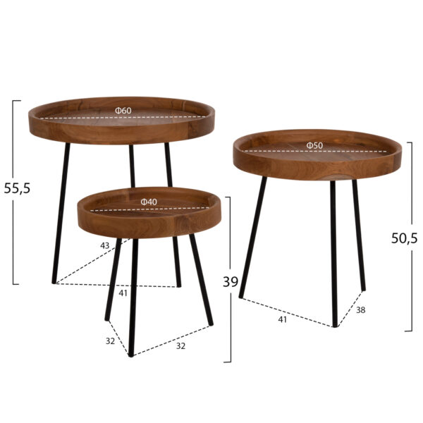 ΣΕΤ 3ΤΜΧ ΒΟΗΘΗΤΙΚΑ ΤΡΑΠΕΖΙΑ MANTARYS HM9799 ΞΥΛΟ MINDI-ΜΑΥΡΑ ΜΕΤΑΛΛΙΚΑ ΠΟΔΙΑ Φ60×55,5Υ εκ.