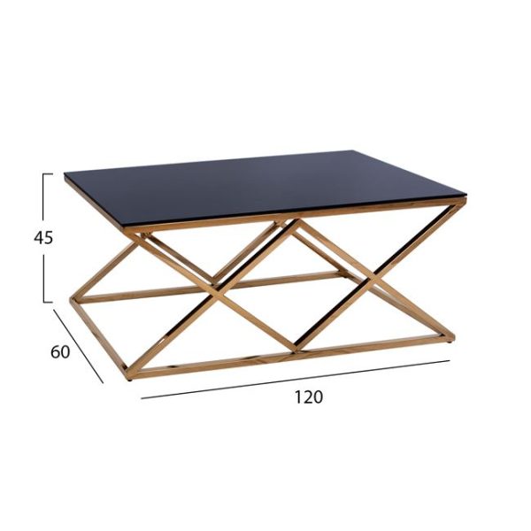 ΤΡΑΠΕΖΙ ΣΑΛΟΝΙΟΥ HOLLAND HM8624.02 ΜΕ ΜΑΥΡΟ ΓΥΑΛΙ ΚΑΙ ΕΠΙΧΡΥΣΗ ΒΑΣΗ 120X60Χ45 EK.