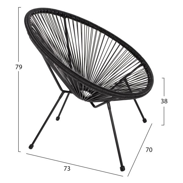 ΠΟΛΥΘΡΟΝΑ ΤΥΠΟΥ ΦΩΛΙΑ ΜΕΤΑΛΛΙΚΗ ACAPULCO ΜΑΥΡΗ ΜΕ ΜΑΥΡΟ P.E.RATTAN HM5872.01 70x73x79 εκ.
