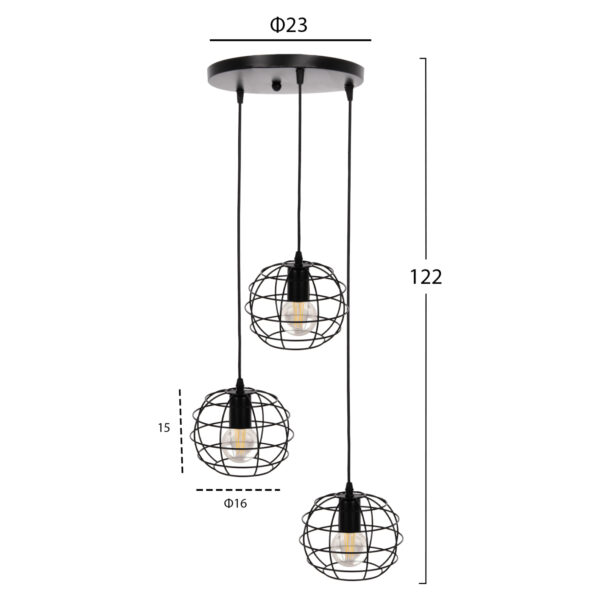 ΦΩΤΙΣΤΙΚΟ ΟΡΟΦΗΣ ΚΡΕΜΑΣΤΟ HM4036 3 ΚΥΒΟΙ ΜΑΥΡΟ ΜΕΤΑΛΛΟ Φ23x122Yεκ.