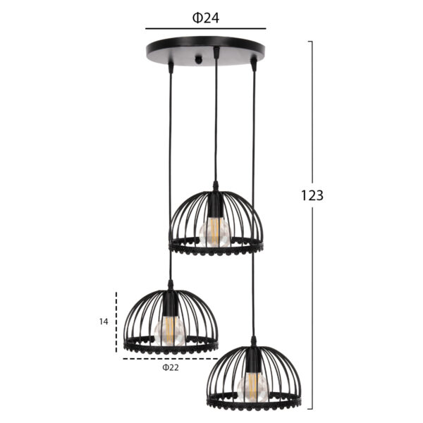 ΦΩΤΙΣΤΙΚΟ ΟΡΟΦΗΣ ΚΡΕΜΑΣΤΟ HM4086 3ΦΩΤΟ ΜΑΥΡΕΣ ΜΕΤΑΛΛΛΙΚΕΣ ΟΜΠΡΕΛΕΣ Φ22×123Υεκ.