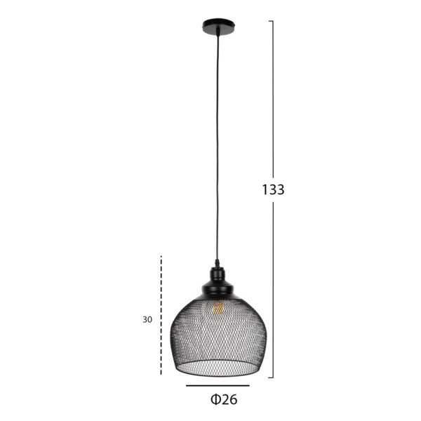ΦΩΤΙΣΤΙΚΟ ΟΡΟΦΗΣ ΚΡΕΜΑΣΤΟ HM4101 ΜΑΥΡΟ ΜΕΤΑΛΛΙΚΟ ΔΙΚΤΥΩΤΟ ΚΑΠΕΛΟ Φ26×125Υεκ.