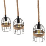 Αφήστε το φως να απλωθεί στον χώρο με ένα πρωτότυπο και φινετσάτο κρεμαστό οροφής, ολοκληρώνοντας την διακόσμησή σας. Το 3-φωτο αυτό, κρέμεται από μια μεταλλική βάση στην οροφή με αλυσίδες, οι οποίες κρατάνε μια μαύρη μεταλλική σωλήνα. Από αυτή την σωλήνα κρέμονται με σχοινί οι 3 λάμπες σε όμορφα καπελάκια.