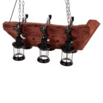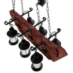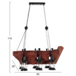 Ανακαλύψτε το εντυπωσιακό 6-φωτο φωτιστικό οροφής HM4117. Ένα φωτιστικό που θα αποτελέσει το κέντρο του ενδιαφέροντος χάρη στο εντυπωσιακό και εμπνευσμένο του design. Τα 6 φαναράκια που περιέχουν τους λαμπτήρες κρέμονται με όμορφες μεταλλικές κρεμάστρες από μια ξύλινη πλάκα με την μορφή πλοίου, η οποία με την σειρά της κρέμεται από την οροφή με αλυσίδες.