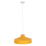 Ανακαλύψτε αυτό το νέο μας κρεμαστό φωτιστικό οροφής και ολοκληρώστε την διακόσμησή σας. Πρόκειται για ένα φωτιστικό με ΚΙΤΡΙΝΟ ρηχό μεταλλικό καπέλο σε σχήμα καμπάνας με λεπτομέρεια ξύλου στην κορυφή του φωτιστικού. Αισθητικά, ολοκληρώνεται με το λευκό καλώδιο κρέμασης και την λευκή βάση οροφής, και αποτελεί την τελευταία τάση στα φωτιστικά οροφής.