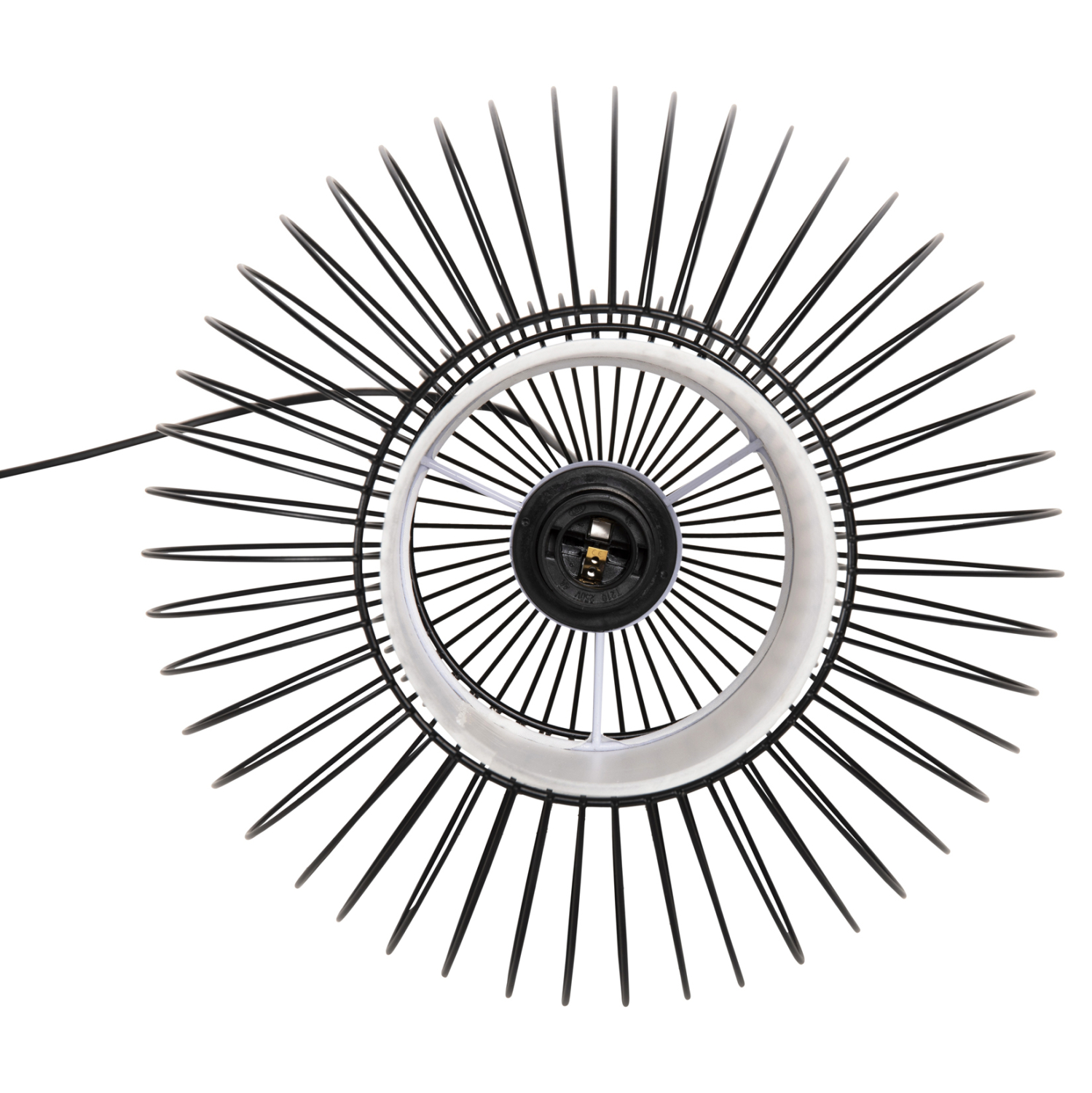HΜ4185—Γνωρίστε αυτό το νέο πρωτότυπο και φινετσάτο μονόφωτο οροφής στην γκάμα μας και ολοκληρώστε την διακόσμησή σας. Διαθέτει ΜΑΥΡΟ μεταλλικό καπέλο σε δικτυωτή υλοποίηση, ενώ ο λαμπτήρας βρίσκεται μέσα σε ένα λευκό πλαστικοποιημένο ύφασμα που τονίζει την φωτεινότητα αλλά παράλληλα δεν εμποδίζει καθόλου το φως να φτάσει σε κάθε γωνιά, και είναι η επιτομή του μοντέρνου design στα φωτιστικά οροφής.