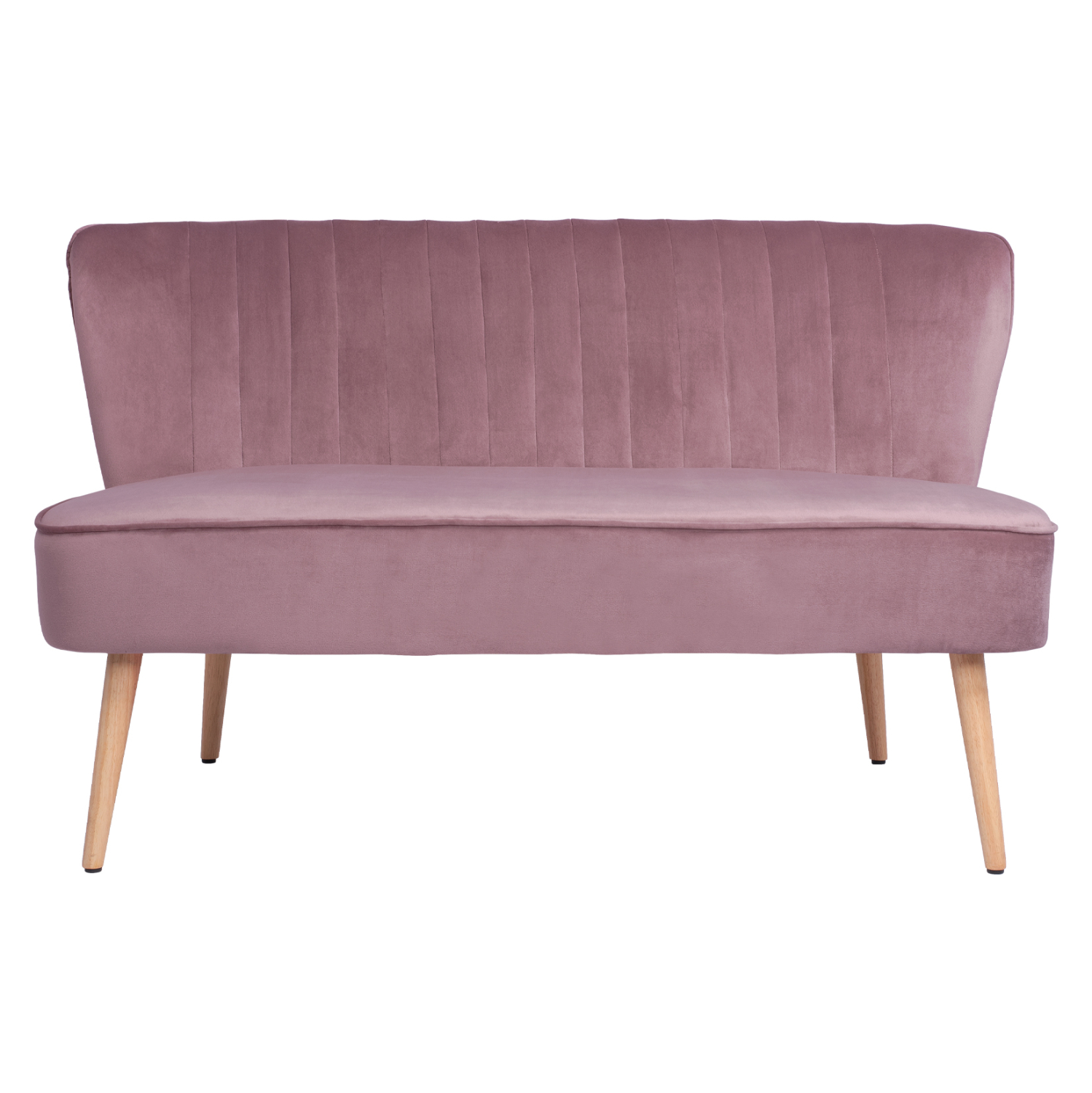 Διθέσιος καναπές ANDY με ύφασμα από βελούδο σε σάπιο μήλο απόχρωση και ξύλινα πόδια σε φυσική απόχρωση.