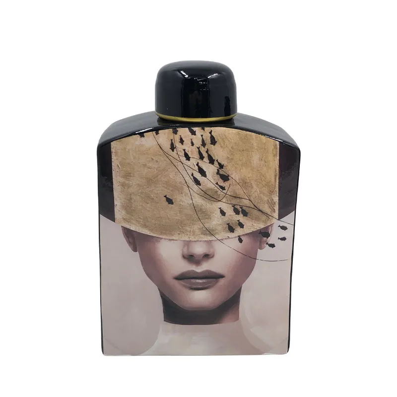 ΚΕΡΑΜΙΚΟ ΚΟΥΠ ΜΕ ΚΑΠΑΚΙ ΜΕΓΑΛΟ ΓΥΝΑΙΚΑ ΜΕ ΚΑΠΕΛΟ ΜΑΥΡΟ/ΧΡΥΣΟ & ΨΑΡΑΚΙΑ – 20.5×9.5x30cm 4/KIB
