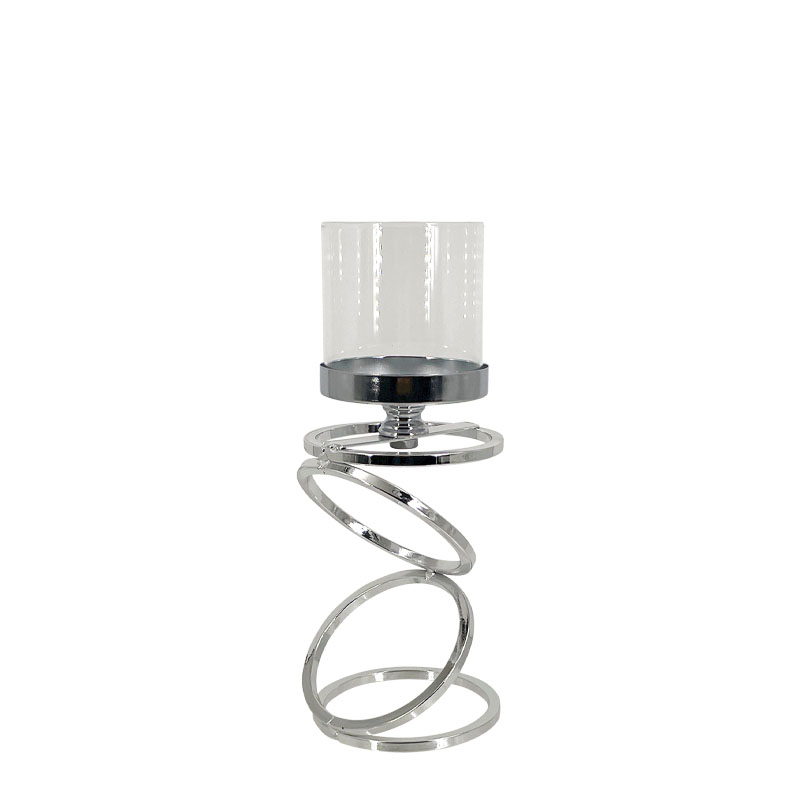 ΚΗΡΟΠΗΓΕΙO ΜΕΤΑΛΛΙΚO ΑΣΗΜΙ/ΛΕΥΚΟ ΜΙΚΡΟ ΜΟΝΤΕΡΝΟΙ ΚΥΚΛΟΙ ΜΕ ΓΥΑΛΙ ΜΟΝΟ – Φ10x29cm 24/ΚΙΒ
