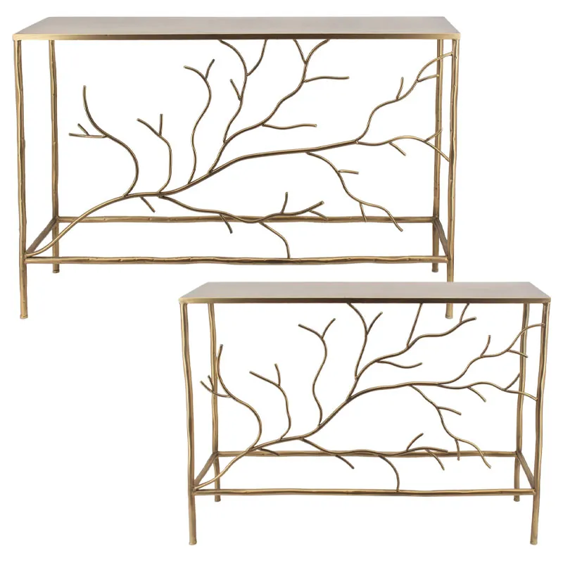 ΜΕΤΑΛΛΙΚΟ ΤΡΑΠΕΖΑΚΙ SET/2 ΧΡΥΣΟ ΟΡΘΟΓΩΝΙΟ/ΚΛΑΔΙΑ – L:120x35x80, S:100x30x75cm 1/KIB