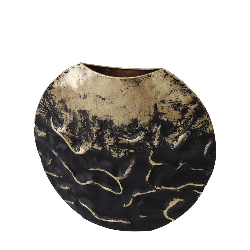 ΜΕΤΑΛΛΙΚΟ ΒΑΖΟ ΜΑΥΡΟ/ΧΡΥΣΟ ΤΣΑΛΑΚΩΤΟ ΣΤΡΟΓΓΥΛΟ – 42.5×12.7×38.7cm 4/KIB