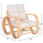 Ολόκληρη η πολυθρόνα είναι κατασκευασμένη από φυσικό Rattan. Το Rattan είναι το καλύτερο και το πιο ευρέως χρησιμοποιούμενο φυσικό υλικό για την κατασκευή επίπλων. Το Rattan που καλλιεργείται στην Ν.Α. Ασία είναι το ποιοτικότερο και ανθεκτικότερο υλικό από παρόμοια που καλλιεργούνται σε άλλες περιοχές. Το Rattan είναι ένα φυσικά αναπτυσσόμενο είδος αμπέλου που είναι εγγενές σε τροπικές περιοχές της Αυστραλίας, της Ασίας και της Αφρικής. Με περισσότερα από 600 διαφορετικά είδη, το RATTAN μπορεί να διακριθεί ως ένα ισχυρό ινώδες φυτό που μοιάζει με το μπαμπού και χρησιμοποιείται για έπιπλα επειδή είναι ελαφρύ, ανθεκτικό, εύκαμπτο και ελκυστικό.