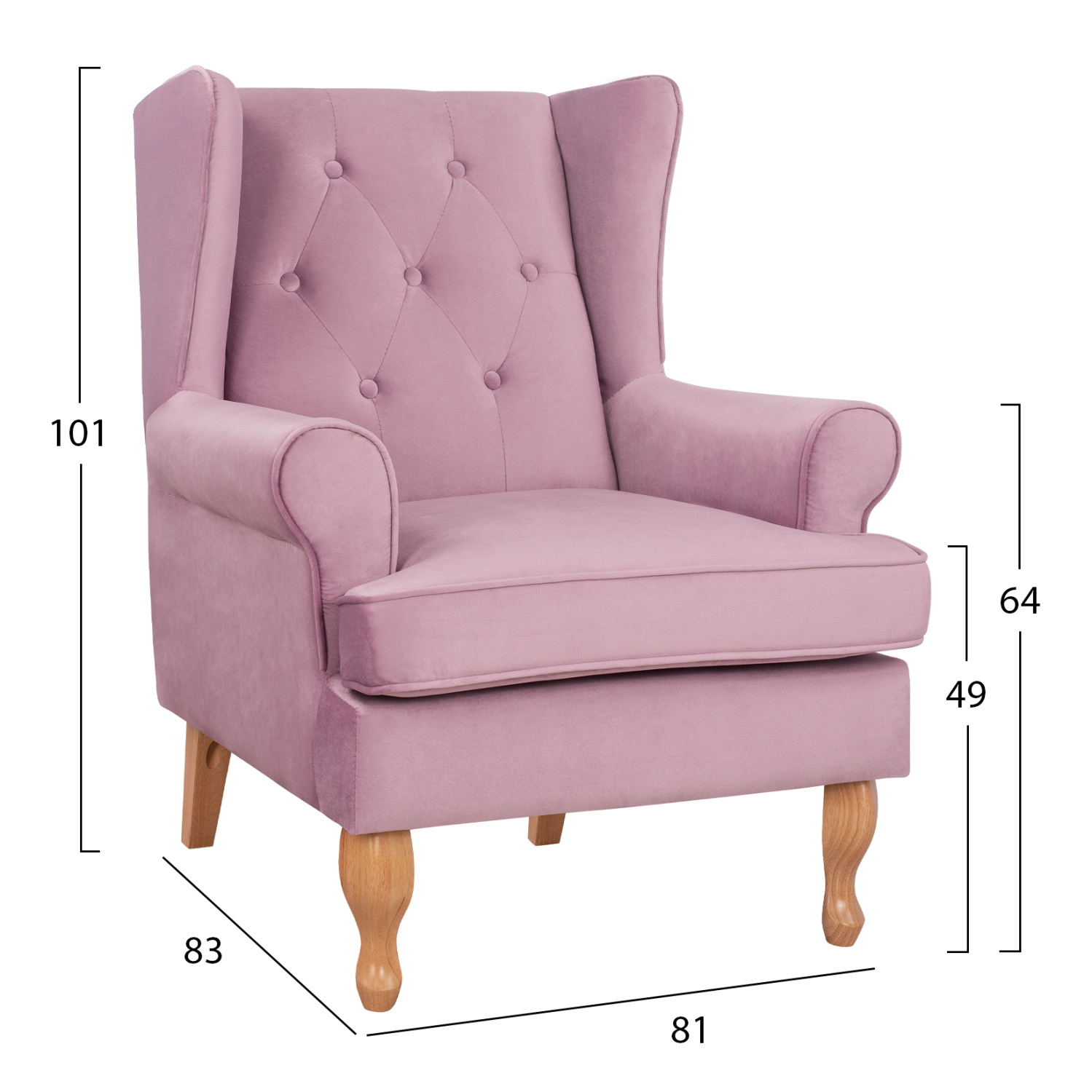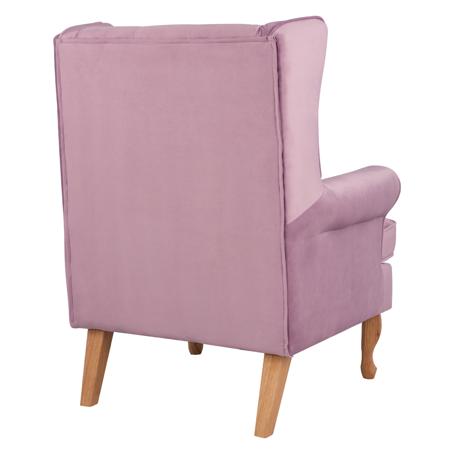 Σας παρουσιάζουμε την μπερζέρα BRANDON, σε πανέμορφο ΛΙΛΑ χρώμα με ξύλινα πόδια. Τα πόδια είναι σε φυσικό χρώμα ξύλου, και ιδιαίτερα τα εμπρός πόδια έχουν όμορφο σκαλιστό φινίρισμα. Η επένδυση της πλάτης έχει γίνει με τεχνοτροπία καπιτονέ που προσδίδει ιδιαίτερη ομορφιά στην μπερζέρα σε συνδυασμό, φυσικά, με το υψηλής ποιότητας βελούδινο ύφασμα. Τα μπράτσα και το κάθισμα είναι ιδιαιτέρως αναπαυτικά ανταποκρινόμενα στον χαρακτήρα της πολυθρόνας.