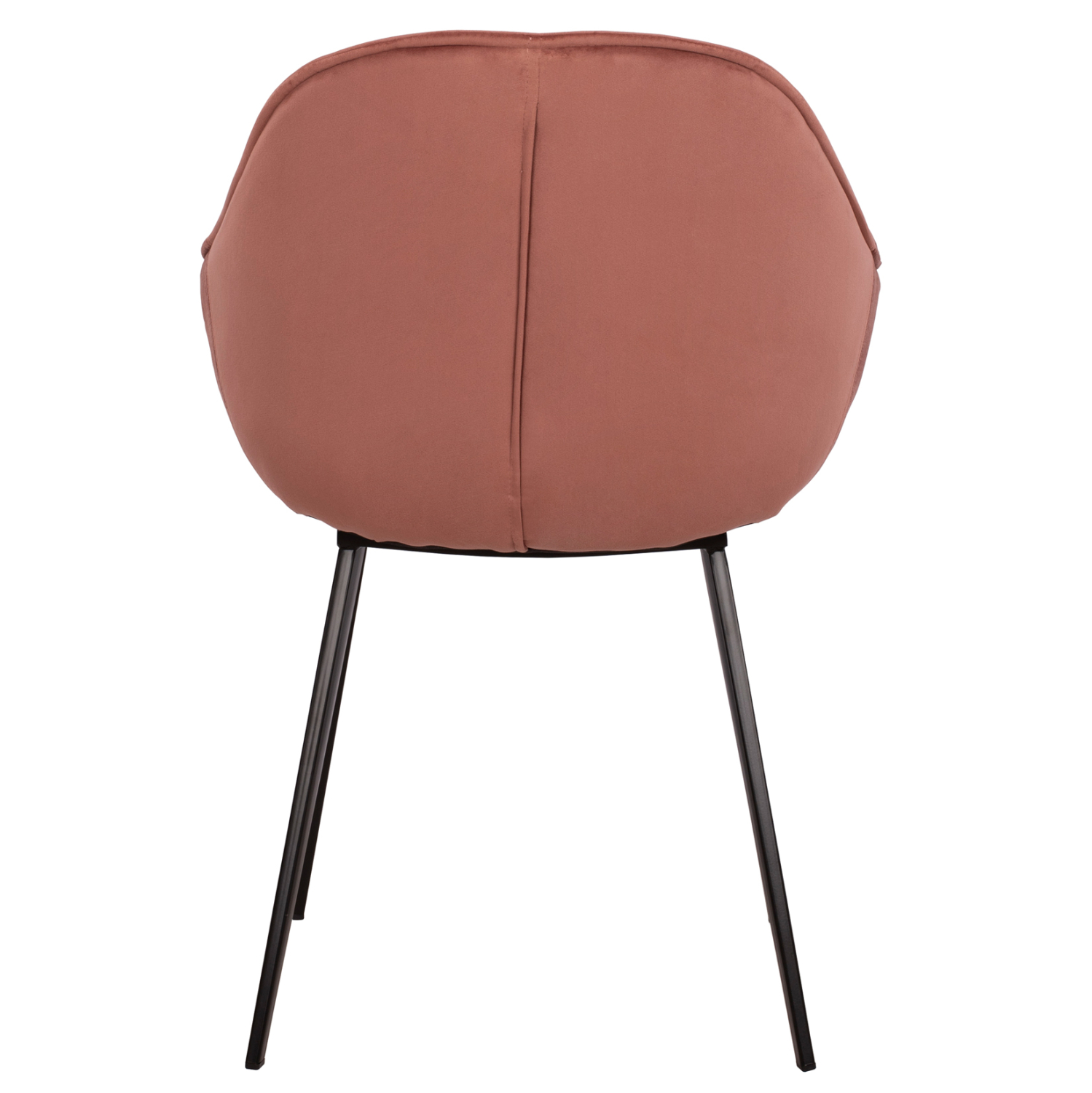 Πολυθρόνα Bethany με ύφασμα βελούδο σε σάπιο μήλο απόχρωση και μεταλλικά πόδια σε μαύρη απόχρωση.