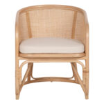 Η πολυθρόνα ΚΙΚΟ είναι κυρίως για εξωτερικούς χώρους, και ουσιαστικά δεν έχει ξεχωριστά μπράτσα αλλά ο σχεδιασμός της πλάτης είναι κυρτός αγκαλιάζοντας το σώμα σχηματίζοντας μπράτσα. Πρόκειται για μια πανέμορφη πολυθρόνα. Ο σκελετός της όπως και το κάθισμα, είναι από Rattan σε ΦΥΣΙΚΟ χρώμα, ενώ η πλάτη είναι κατασκευασμένη από πλεκτό rattan (τρυπητό) άριστης ποιότητας. Το μαξιλάρι στο κάθισμα είναι αναπαυτικό και το κάλυμμά του είναι από ΛΕΥΚΟ ανάγλυφο και απαλό ύφασμα.
