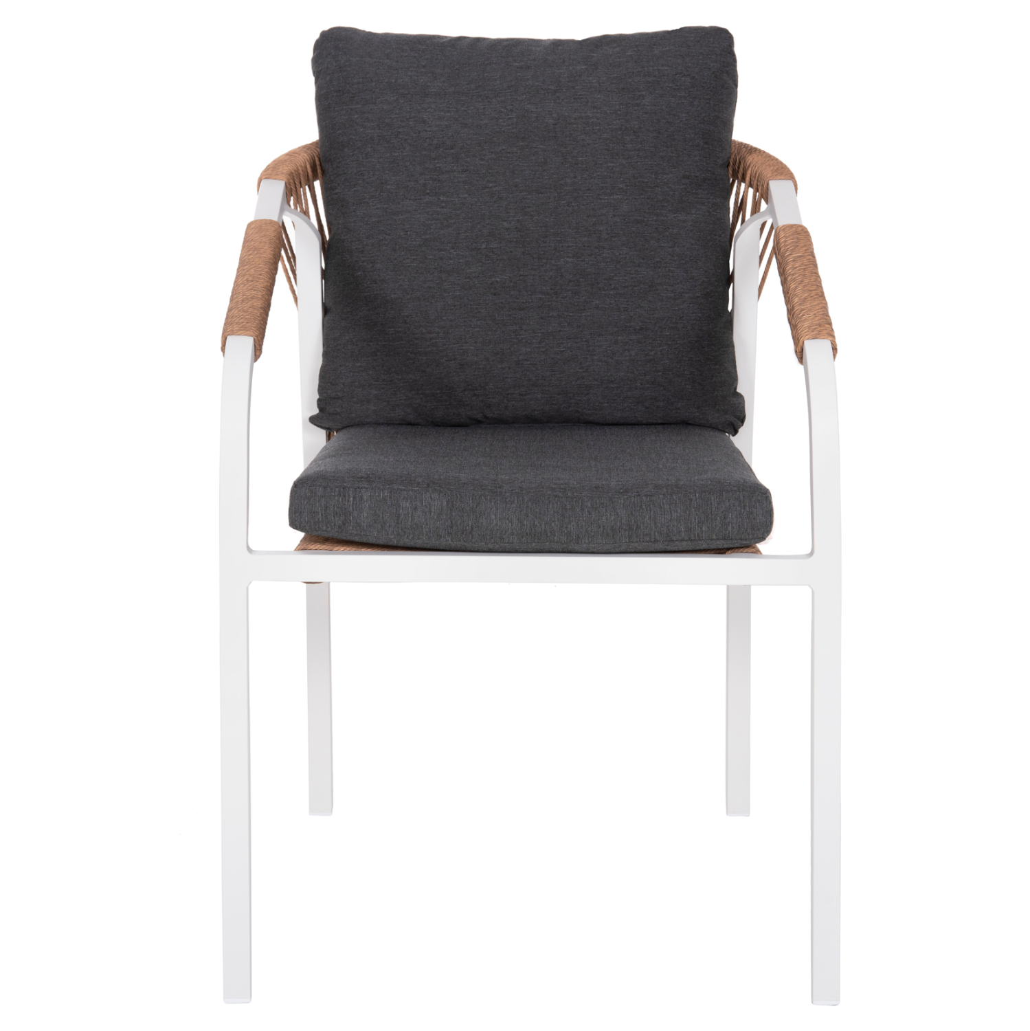 Η πολυθρόνα αλουμινίου MAERLY σε ΛΕΥΚΟ χρώμα είναι τόσο για επαγγελματική χρήση όσο και για το σπίτι. Ουσιαστικά δεν έχει ξεχωριστά μπράτσα αλλά η πλάτη είναι ενιαία με τα μπράτσα αγκαλιάζοντας το σώμα. Πρόκειται για μια πανέμορφη πολυθρόνα με χαμηλή πλάτη και κάθισμα από συνθετικό Rattan (twisted) άριστης ποιότητας σε ΑΝΟΙΧΤΟ ΚΑΦΕ χρώμα. Το ιδιαίτερο χαρακτηριστικό αυτής της πολυθρόνας είναι ότι διαθέτει αναπαυτικά μαξιλάρια τόσο στο κάθισμα όσο και στην πλάτη, σε ΑΝΘΡΑΚΙ χρώμα.