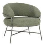 Ολόκληρη η επένδυση της πολυθρόνας έχει γίνει από εξαιρετικής ποιότητας μπουκλέ ύφασμα. Μπουκλέ λέγεται οποιοδήποτε ύφασμα που έχει κόμπο-μπούκλα στην ύφανσή του. Κατασκευάζεται από σχεδόν όλες τις πρώτες ύλες (αν και συνήθως είναι συνθετικό) με ειδικές κλωστές με κόμπους ή πολύ στριμμένα νήματα, έτσι ώστε να έχει σγουρή επιφάνεια. Δεν τσαλακώνει και μπορεί να είναι μονόχρωμο, μελανζέ ,καρώ ή τουιντ.