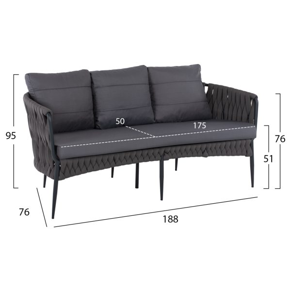 ΚΑΝΑΠΕΣ ΤΡΙΘΕΣΙΟΣ ΑΝΘΡΑΚΙ-ΑΝΟΙΧΤΟ ΓΚΡΙ HM5924.10 188x76x95Υ εκ.