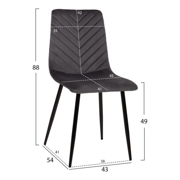 ΚΑΡΕΚΛΑ LATRELL HM8587.01 ΒΕΛΟΥΔΟ ΓΚΡΙ ΜΕ ΜΑΥΡΑ ΜΕΤΑΛΛΙΚΑ ΠΟΔΙΑ 43x54x88Υεκ.