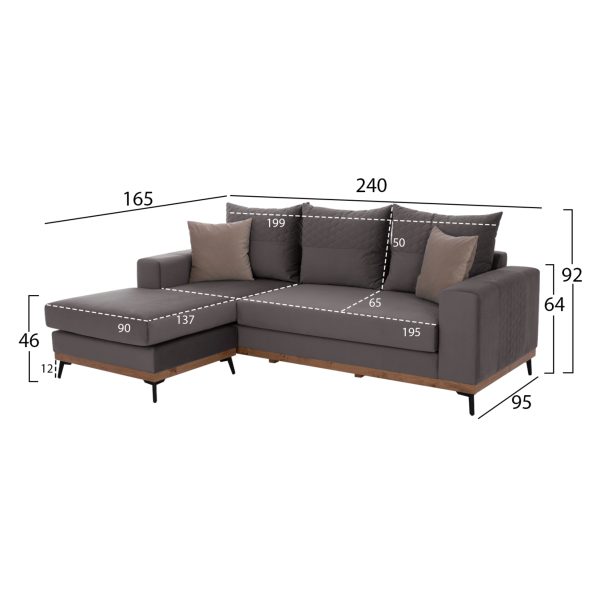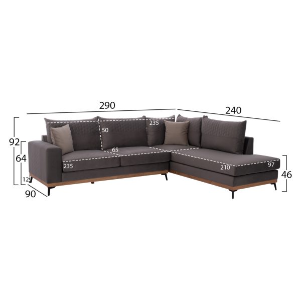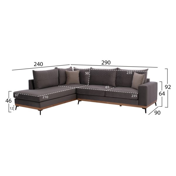 ΚΑΝΑΠΕΣ ΑΡΙΣΤΕΡΗ ΓΩΝΙΑ MESINA ΥΦΑΣΜΑ ΑΛΕΚΙΑΣΤΟ ΓΚΡΙ 290x240x92Υεκ.HM3253.01L