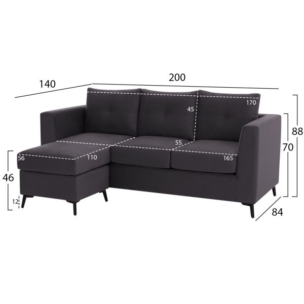 ΚΑΝΑΠΕΣ ΓΩΝΙΑ ΑΝΑΣΤΡΕΨΙΜΗ PONZA ΥΦΑΣΜΑ ΑΛΕΚΙΑΣΤΟ ΓΚΡΙ 200x140x88Υεκ. HM3251.01