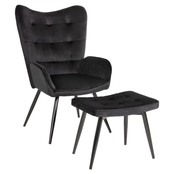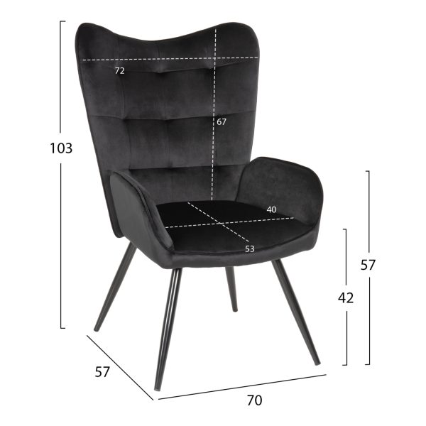 ΠΟΛΥΘΡΟΝΑ ΜΠΕΡΖΕΡΑ CRAWLEY ΜΕ ΥΠΟΠΟΔΙΟ HM8918.04 ΜΑΥΡΟ ΒΕΛΟΥΔΟ 70x57x103Y εκ.