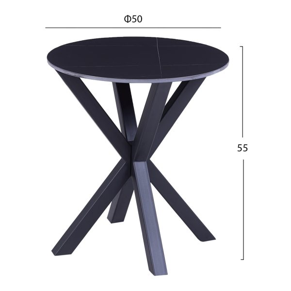 ΒΟΗΘΗΤΙΚΟ ΤΡΑΠΕΖΑΚΙ ΣΤΡΟΓΓΥΛΟ HM9473.04 BLACK MARBLE ΕΠΙΦΑΝΕΙΑ ΜΑΥΡΗ ΒΑΣΗ Φ50x55Yεκ.