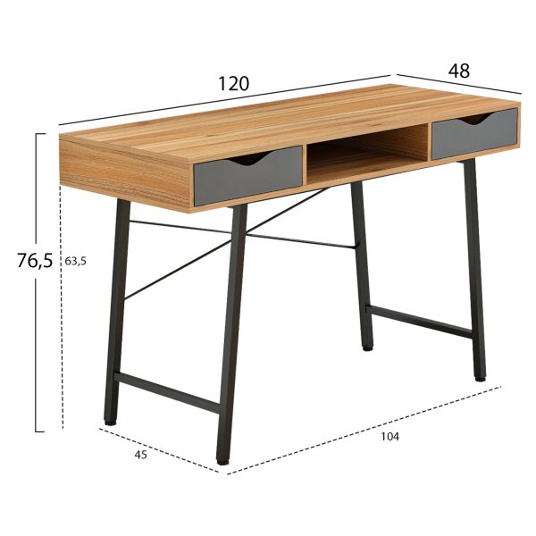ΓΡΑΦΕΙΟ VITINO HM2130.03 ΜΕΛΑΜΙΝΗ-ΜΕΤΑΛΛΟ ΣΕ ΚΑΡΥΔΙ-ΓΚΡΙ 120X60X76εκ.