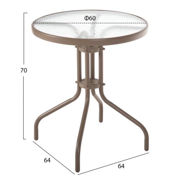 ΤΡΑΠΕΖΙ ΕΞΩΤ.ΧΩΡΟΥ FIGO HM5036.02 ΜΕΤΑΛΛΟ ΚΑΦΕ- ΓΥΑΛΙΝΗ ΕΠΙΦΑΝΕΙΑ 70Χ70Χ72Υεκ