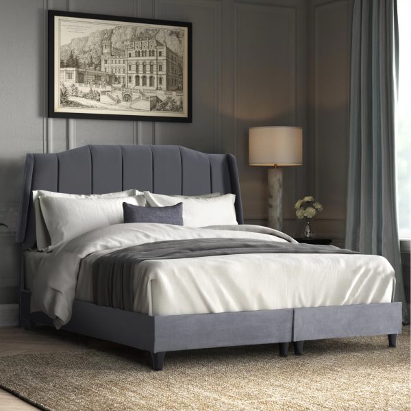 ΚΡΕΒΑΤΙ ROZARIO ΑΠΟ ΓΚΡΙ ΒΕΛΟΥΔΟ HM611.10 ΓΙΑ ΣΤΡΩΜΑ 160×200 εκ.