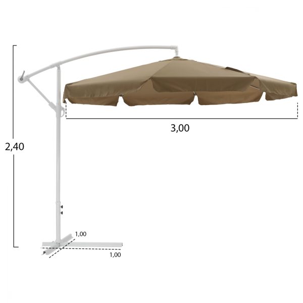 ΟΜΠΡΕΛΑ ΚΡΕΜΑΣΤΗ Φ300x240cm. NOBLE HM6008.02 ΣΤΡΟΓΓΥΛΗ ΣΕ ΒΑΣΗ ΜΕ 4 ΠΟΔΙΑ ΜΟΚΑ ΛΕΥΚΟ