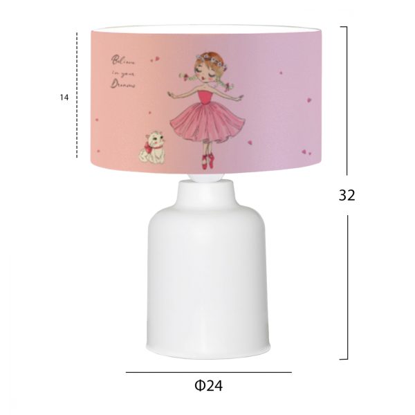 ΠΑΙΔΙΚΟ ΦΩΤΙΣΤΙΚΟ ΕΠΙΤΡΑΠΕΖΙΟ ΥΦΑΣΜΑΤΙΝΟ HM7577.03 ΡΟΖ ΣΧΕΔΙΟ BALLERINA Φ24×32 εκ.