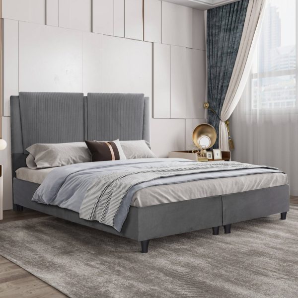 ΚΡΕΒΑΤΙ MARGA ΑΠΟ ΓΚΡΙ ΒΕΛΟΥΔΟ HM610.10 ΓΙΑ ΣΤΡΩΜΑ 160×200 εκ.