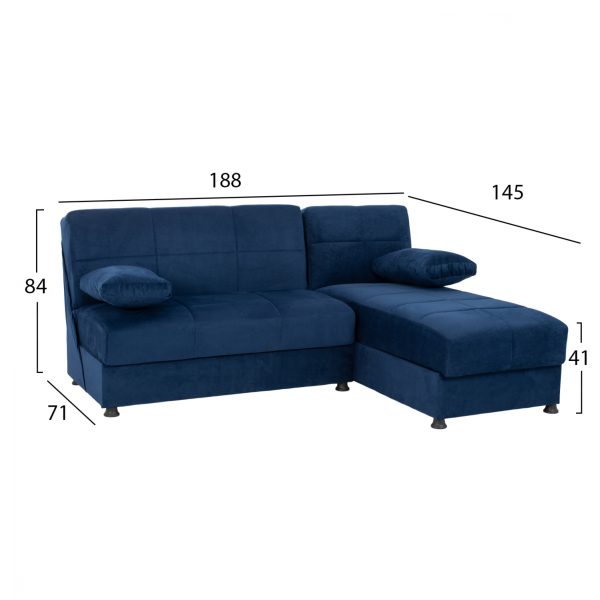 ΓΩΝΙΑΚΟΣ ΚΑΝΑΠΕΣ ΚΡΕΒΑΤΙ ΜΕ 2 ΑΠΟΘΗΚΕΥΤΙΚΟΥΣ ΧΩΡΟΥΣ HM3134.08 EGE ΜΠΛΕ 188x145x84Υεκ.