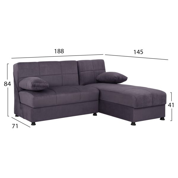 ΓΩΝΙΑΚΟΣ ΚΑΝΑΠΕΣ ΚΡΕΒΑΤΙ ΜΕ 2 ΑΠΟΘΗΚΕΥΤΙΚΟΥΣ ΧΩΡΟΥΣ HM3134.03 EGE ΓΚΡΙ 188x145x84Υεκ.