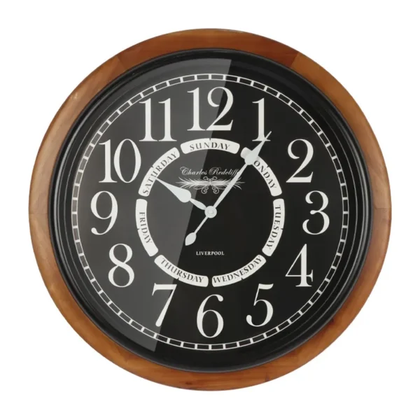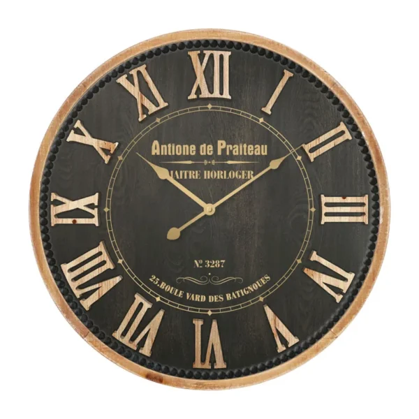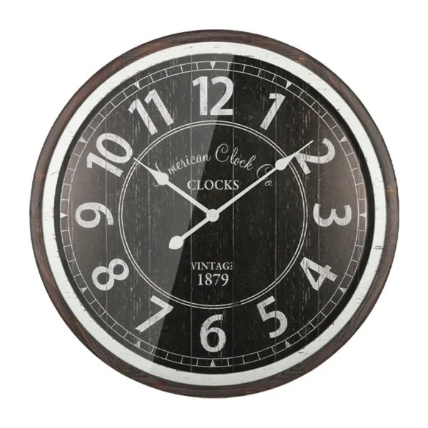 ΩΡΟΛΟΪ ΤΟΙΧΟΥ ΜΑΥΡΟ ΕΦΕ ΞΥΛΟΥ ΣΤΡΟΓΓΥΛΟ ΜΕ ΓΥΑΛΙ & ΑΡΙΘΜΟΥΣ – Φ68×6.5cm 2/ΚΙΒ