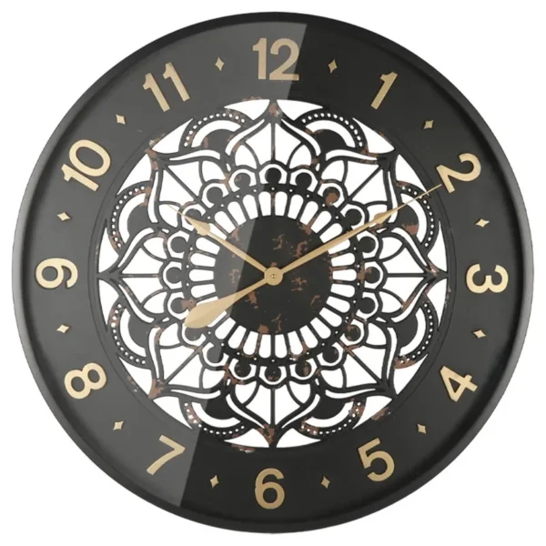 ΩΡΟΛΟΪ ΤΟΙΧΟΥ ΜΑΥΡΟ ΣΤΡΟΓΓΥΛΟ ΔΙΑΤΡΗΤΟ ΜΟΤΙΒΟ ΜΕ ΓΥΑΛΙ & ΑΡΙΘΜΟΥΣ – Φ80x6cm 2/ΚΙΒ