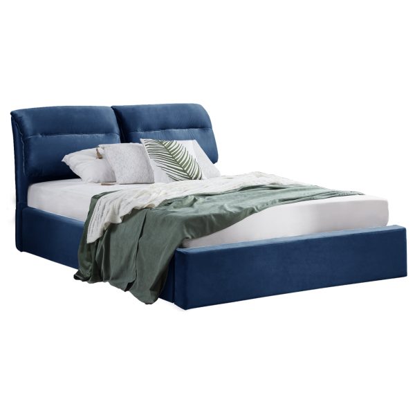 ΚΡΕΒΑΤΙ KENDRA ΒΕΛΟΥΔΟ ΜΠΛΕ ΚΑΙ ΑΠΟΘΗΚΕΥΤΙΚΟ ΧΩΡΟ 160×200 εκ. HM565.18